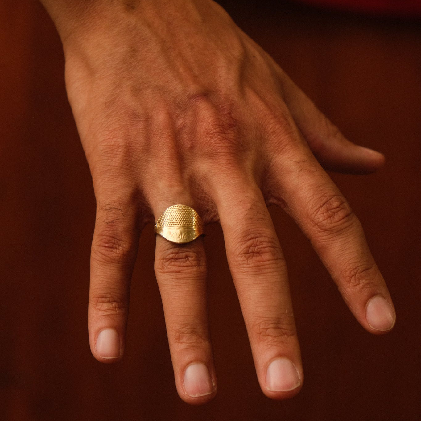 Cast from a carved vintage thimble, found in Brimfield Massachusetts.