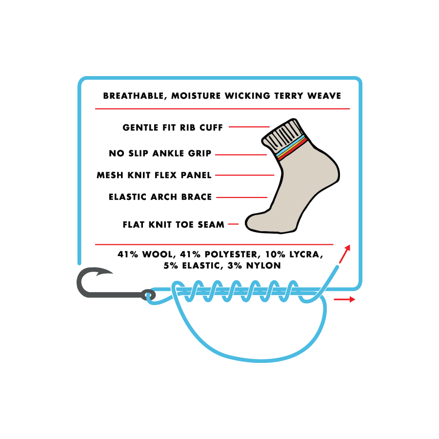 Low cut, all season hiking socks. Designed for sneakers and low boots.
