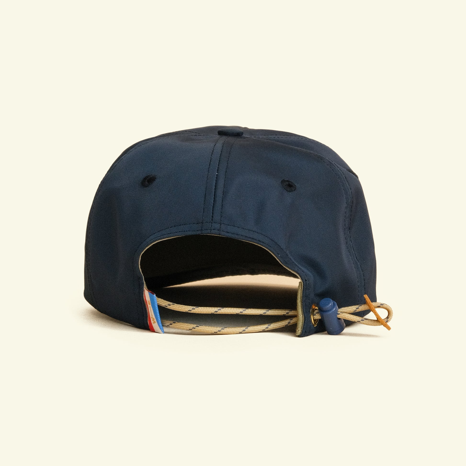 Each hat is different. Olive hats are equipped with an olive cord with tan ticking, and a red cordlock. Navy Hats are equipped with a tan cord with blue ticking, and a blue cordlock. Burgundy Hats are equipped with w tan cord and olive cordlock.