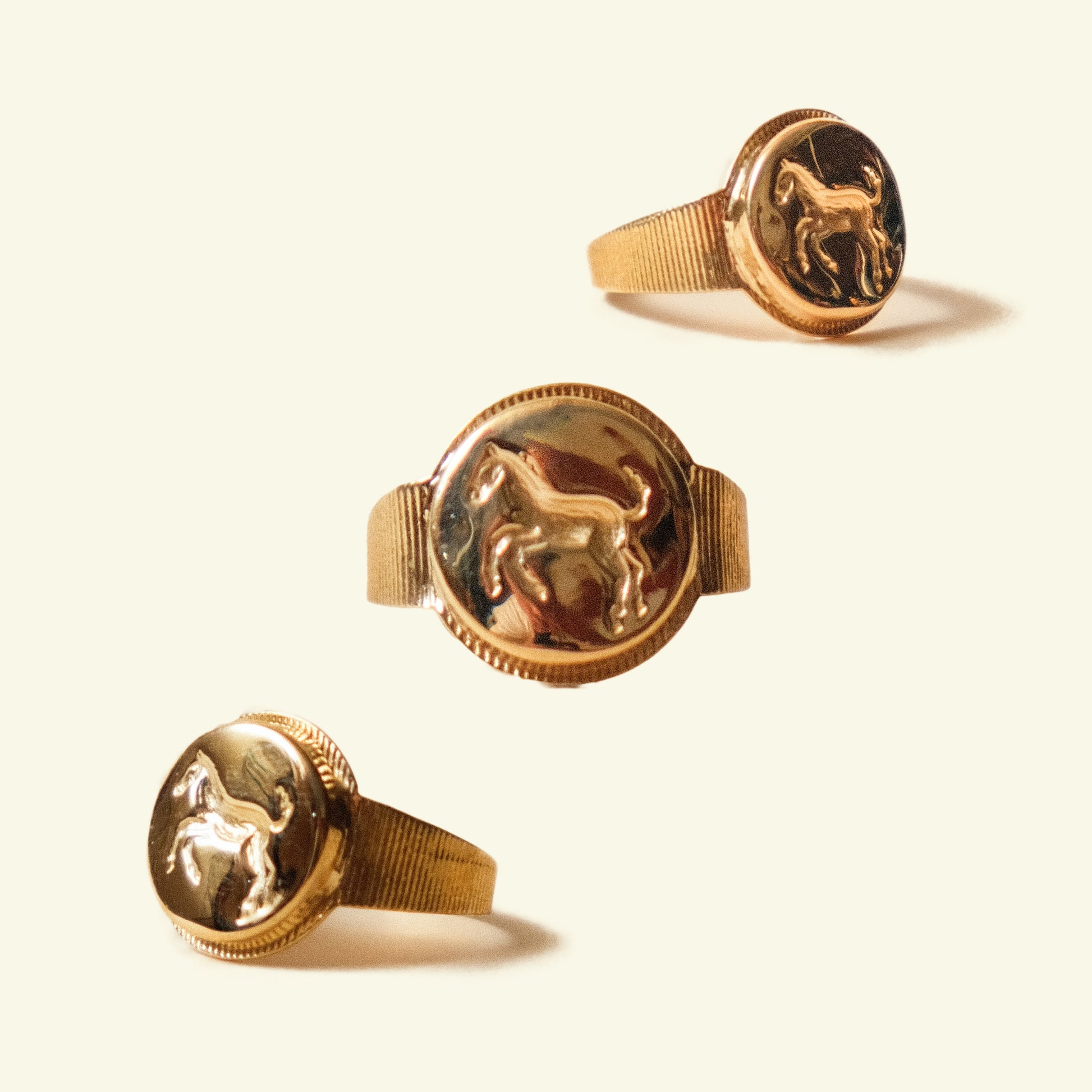 Made in the style of vintage cereal box prizes, but cast in high quality metals. Made in an adjustable one-size-fits- most manner.